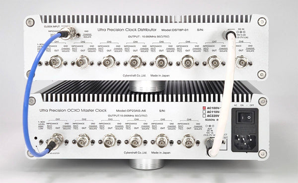 The impedance of the external 10MHz clock input of audio equipment is divided into 50Ω and 75Ω products. While 50Ω is common in measuring instruments, audio equipment often uses a 75Ω input impedance for word clocks, and therefore the external 10MHz input is also often 75Ω. Impedance matching is effective in preventing reflected waves, so it is best to match the impedance of your audio equipment's external clock input.